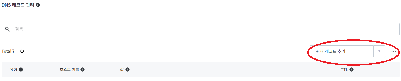 위와 같이 빨간색 표시된 점선 눌러서 DNS 레코드 설정으로 접속!