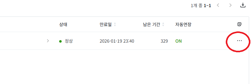 먼저 호스팅KR에 접속하여 나의 서비스 - 나의 도메인으로 접속.